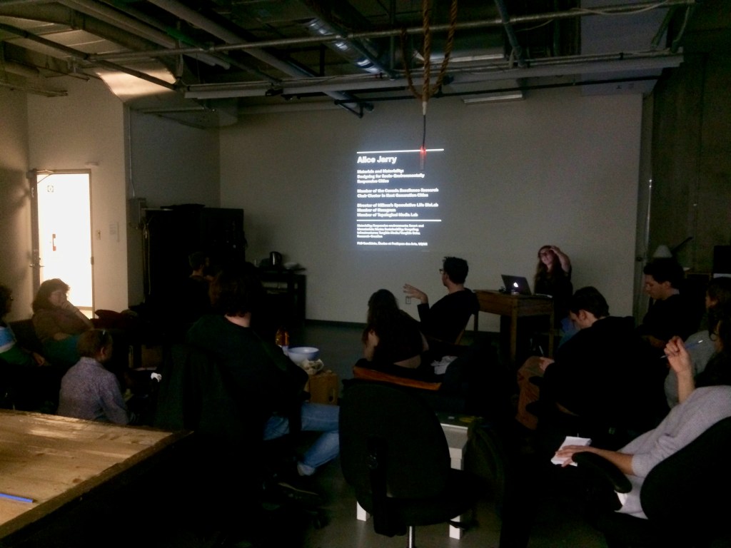 We had a full house at the BioLab Meet-up and Pecha Kucha event Thursday evening. Seasoned BioLabers and prospective members presented their research and artistic practices in the Speculative Life Cluster commons. We also welcomed Alice Jarry into her new role as Lab Director and celebrated the start of Amélie Brindamour’s artist-in-residency—a joint effort between Milieux and CQAM. The night ended in the Topological Media Lab where we had the chance to interact with some projects in the works!