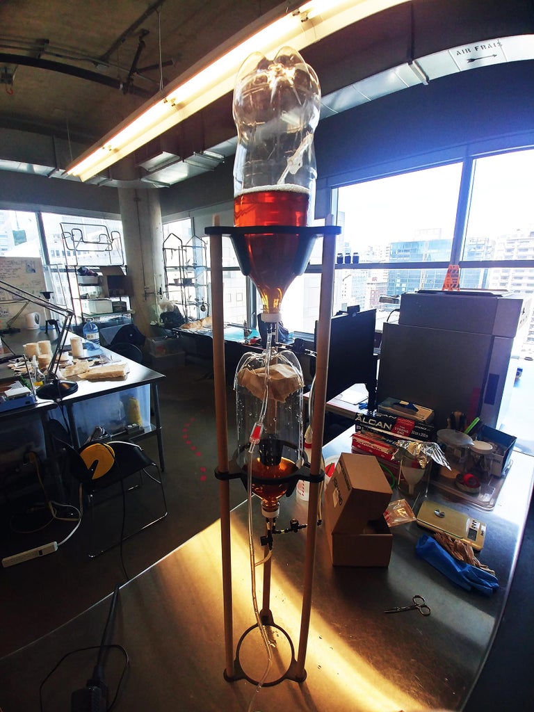 Théo began researching this co-producing fermentor two years ago — along with principal investigator Ann-Louise Davidson — and has produced both a functioning prototype and an Instructable so that you can create one yourself.